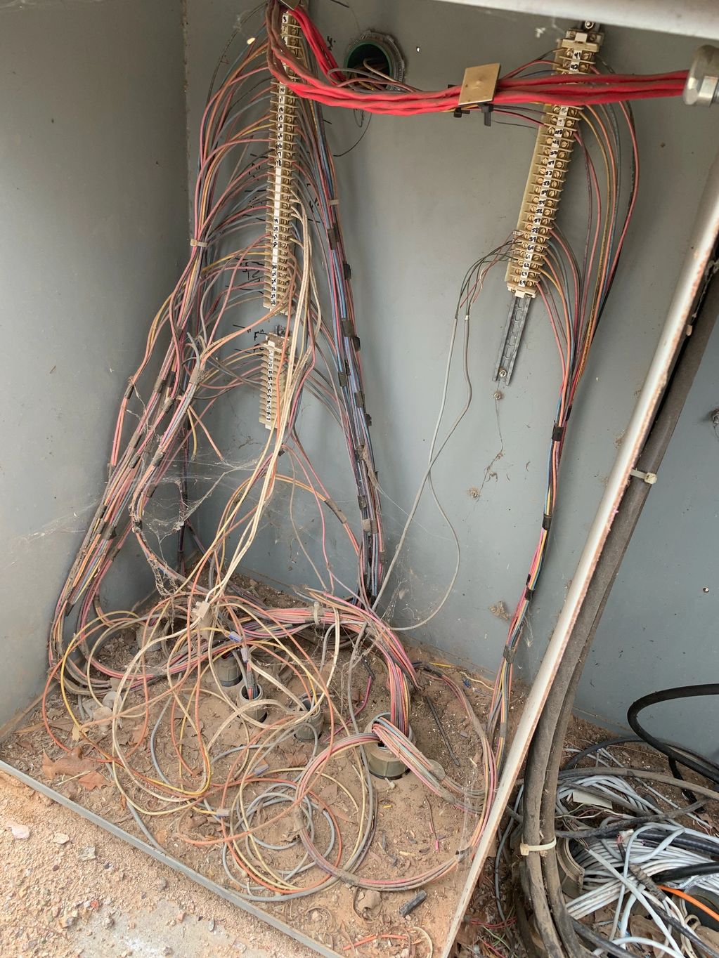 Older install with nice routing of wires to termination blocks. Looks better that the train wreck in other wire box.